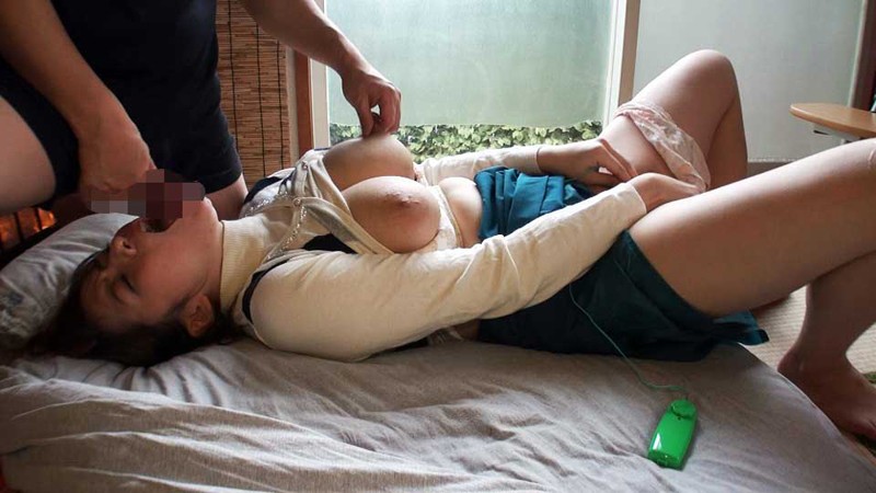 爆乳なのに感度よすぎ、自分で乳首もイジっちゃう